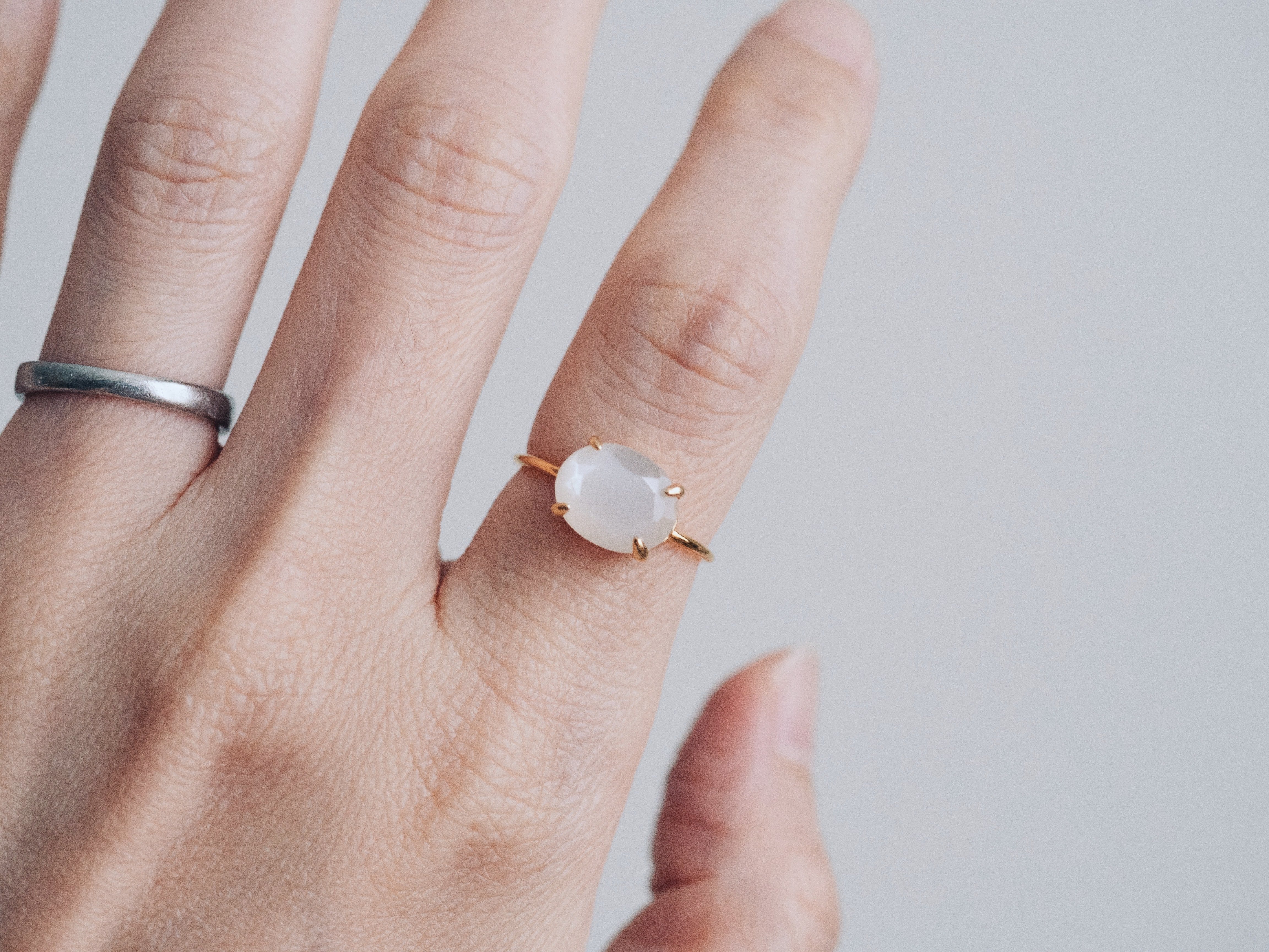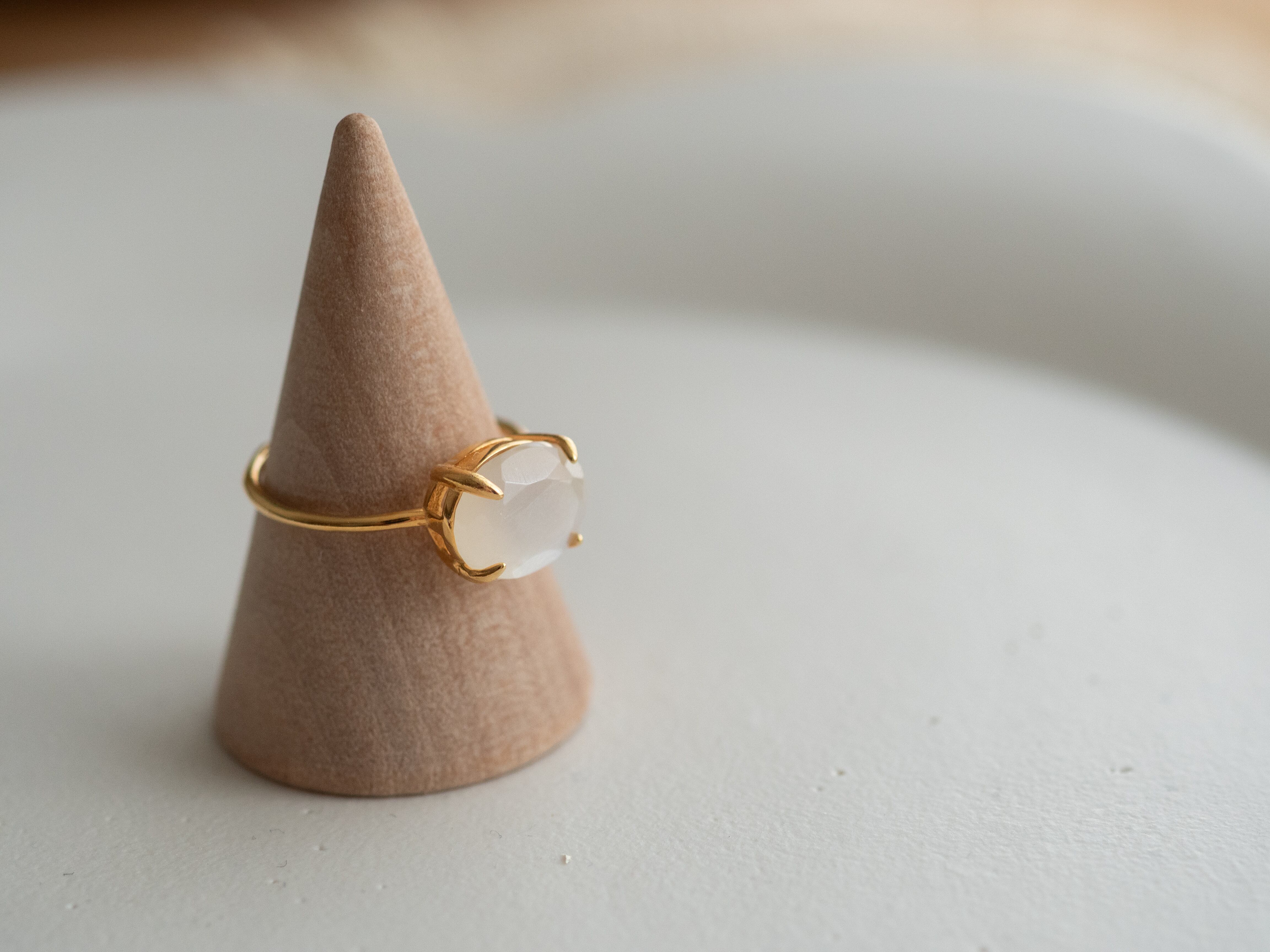 やわらかな白の光をまとった、ホワイトムーンストーンのリング。