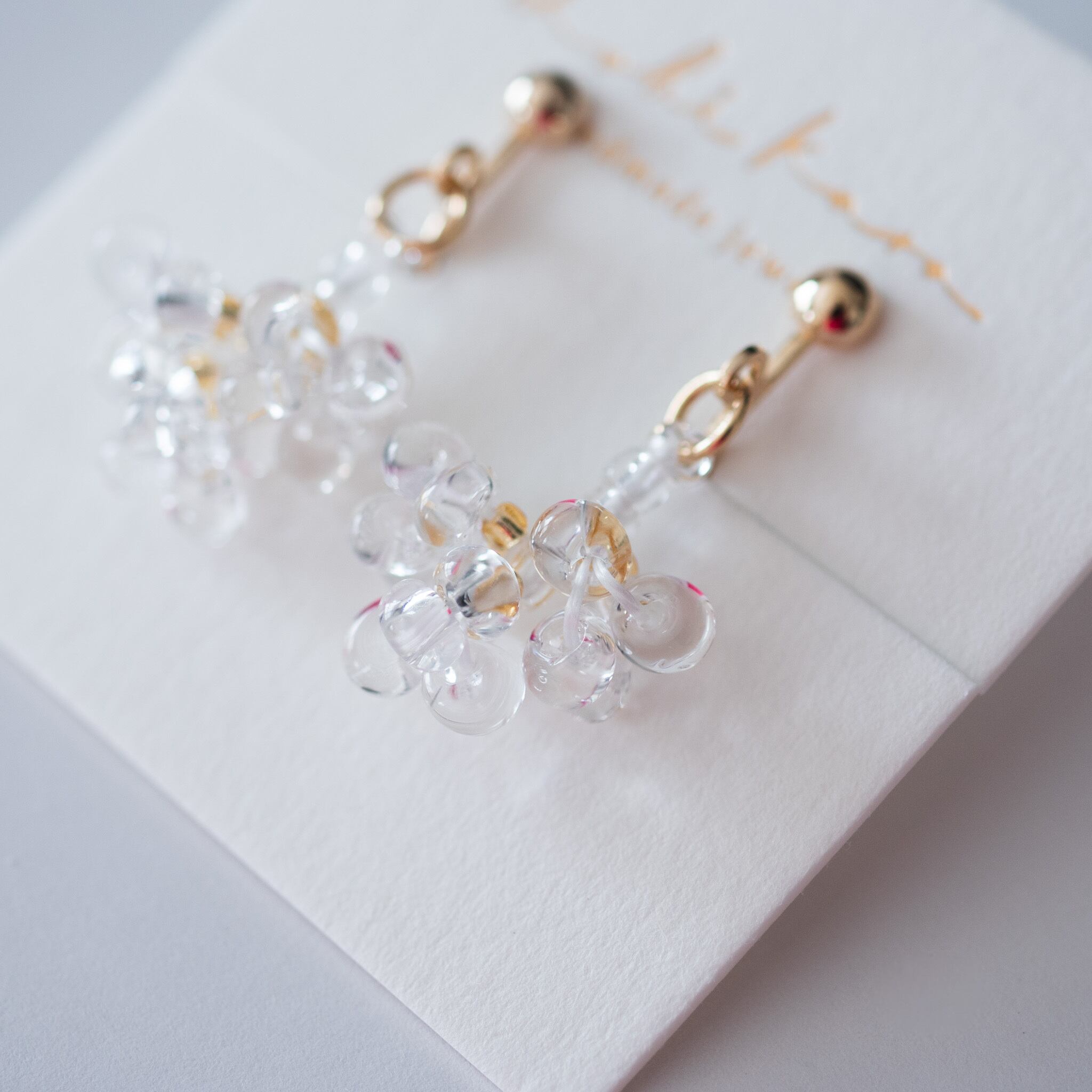 クリアなガラスビーズを使用し、ワンポイントカラーを添えたアイテム。